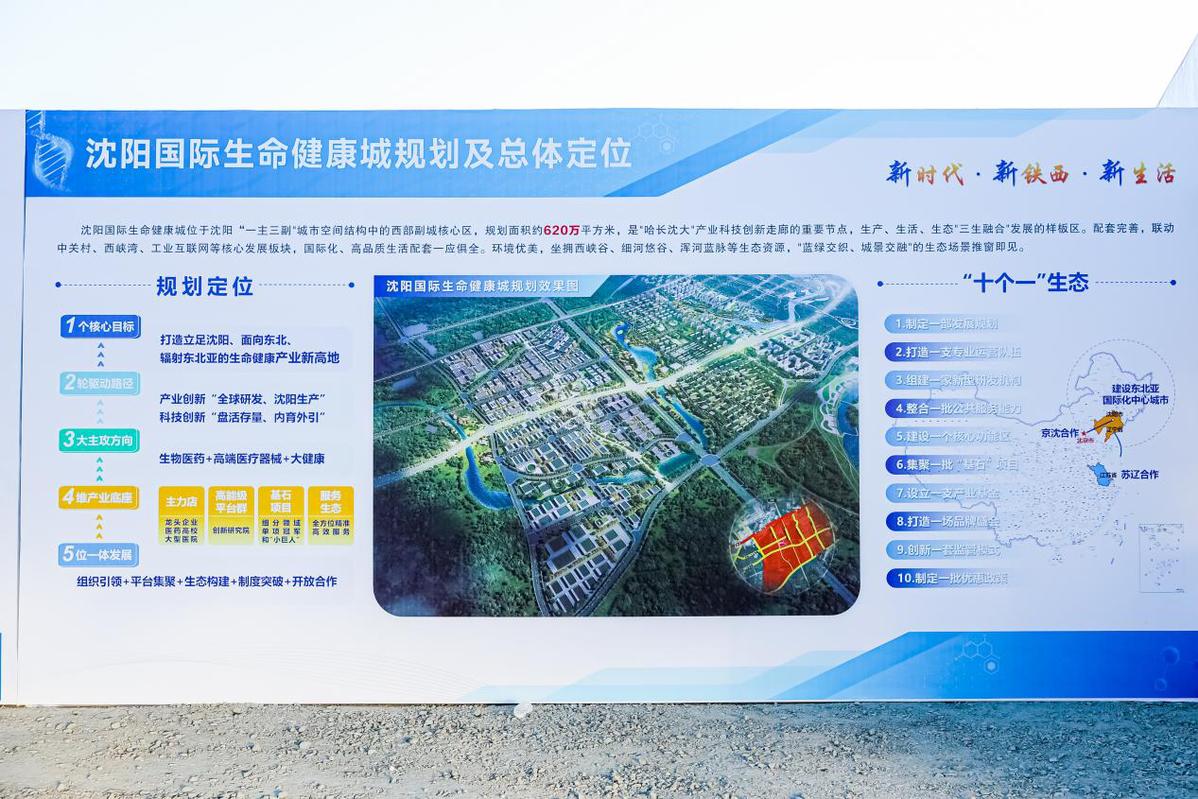 铁西区(经开区、中德园)相关负责人介绍,沈阳国际生命健康城将构筑“12345”战略:“1”是坚定把“打造立足沈阳、面向东北、辐射东北亚的生命健康产业新高地”作为核心目标,“2”是坚持双轮驱动,走以“全球研发、沈阳生产”的产业创新和“盘活存量、内育外引”的科技创新为驱动的发展路径,“3”是坚守好生物医药、高端医疗器械、大健康三大主攻方向,“4”是加速夯实以龙头企业、医药高校、大型医院为基础的“主力店”、以创新研究院为引领的高能级平台群、以细分领域单项冠军和“小巨人”为支撑的“基石”项目、以全方位精准高效服务为核心的创新生态这四大产业底座,“5”是持续增强“组织引领、平台集聚、生态构建、制度突破、开放合作”五位一体发展能力,加速实现生物医药产业“从1到100”的创新蝶变。