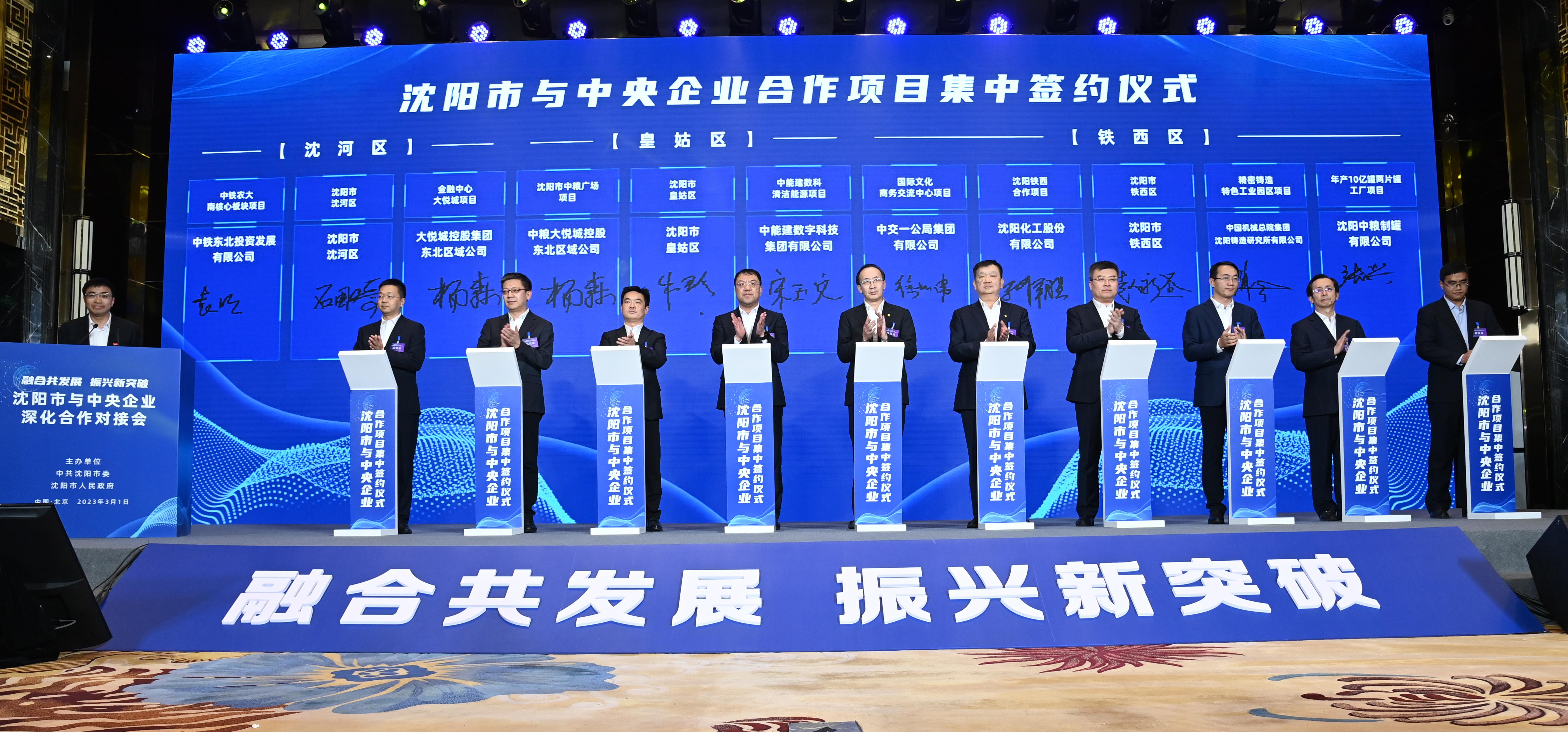沈阳市沈河区、皇姑区、铁西区与央企合作单位签约。