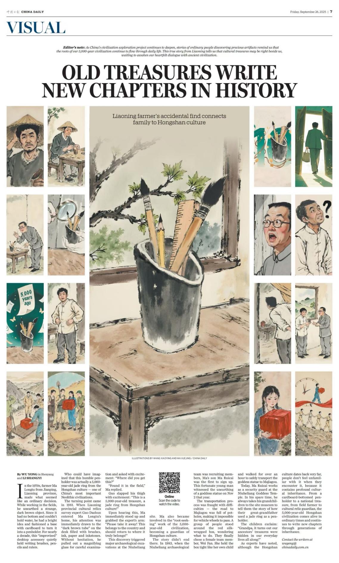 9月26日,中国日报发布整版报道,讲述红山文化“笔筒变国宝” 的传奇故事。