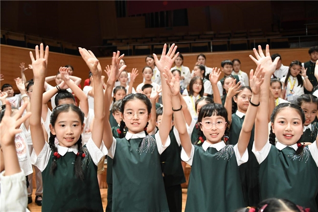 音乐会舞台中央,刚从澳大利亚载誉归来的合唱团国际班团员们,手持团扇、妆容清雅,一曲获奖作品《舟中晓望》婉转响起。就在不久前的第六届悉尼国际文化节上,孩子们以《清平乐・村居》的宋词意蕴、《Come To The Music》的融合多声部合唱技巧,一举斩获童声组、混声组两项金奖——这是合唱团十岁生日收到的珍贵“礼物”。