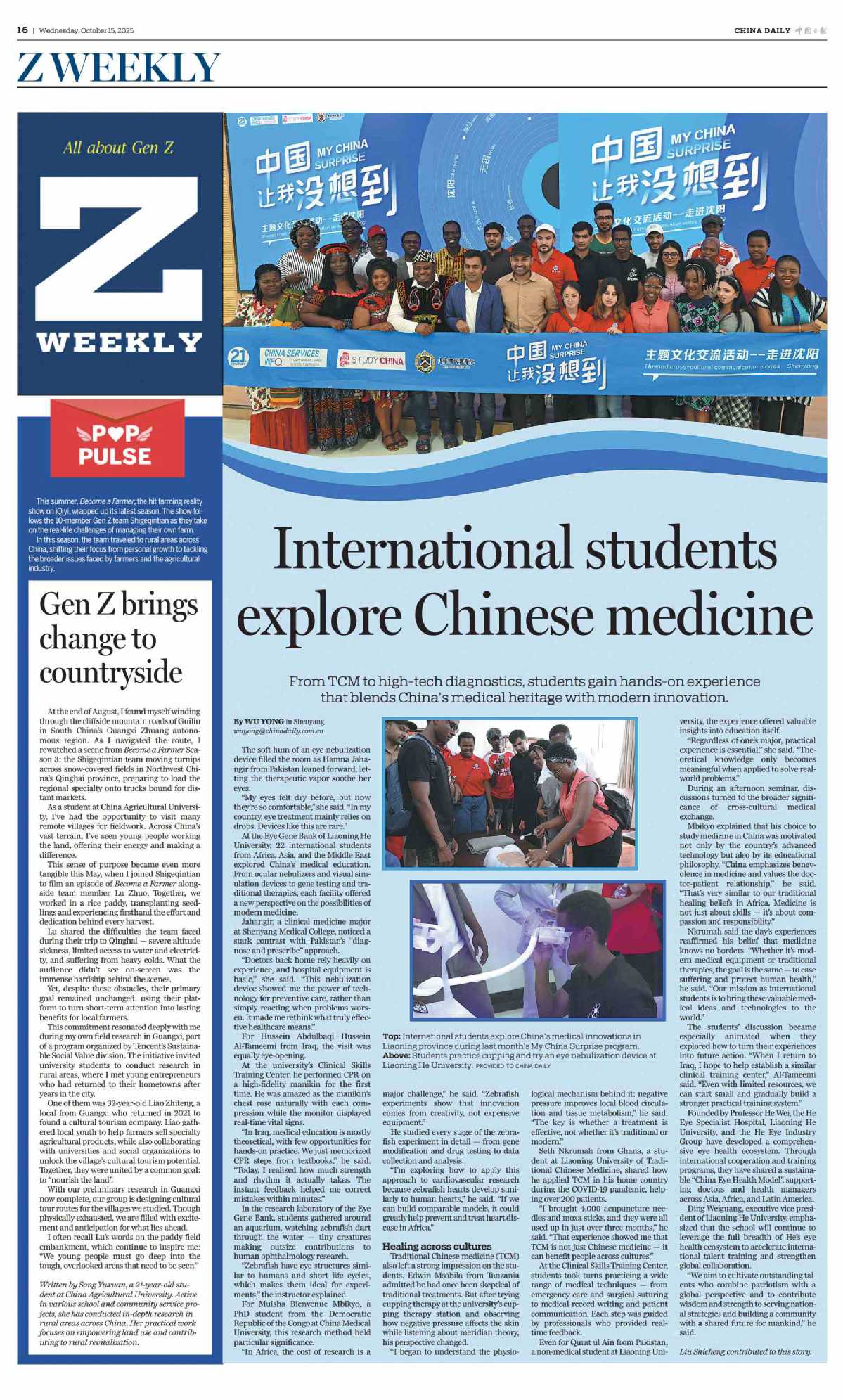 10月15日,中国日报发布《International students explore Chinese medicine》报道,关注辽宁以智慧医疗赋能医学教育国际化。