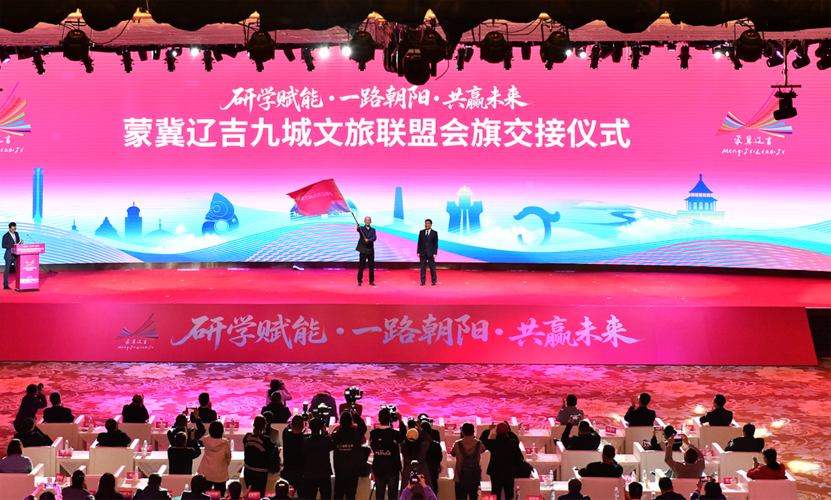 据了解,2022年,内蒙古赤峰市发起组建蒙冀辽五城文旅联盟。2023年,内蒙古通辽市将联盟朋友圈进一步扩大,由蒙冀辽五城拓展为蒙冀辽吉八城。2024年,河北承德市继续注入区域文旅合作新活力,联盟“大家庭”又增辽宁省锦州市,九城文旅联盟更加坚固。在过去一年里,九城始终锚定“资源共享、市场共拓、品牌共树”的核心目标,以行动破题、以合作聚力,在推动区域文旅协同发展道路上留下坚实足迹。蒙冀辽吉九城文旅联盟第四次会议,对2024—2025年九城联盟合作成果进行了总结,系统梳理了九城在文旅资源互推、客源市场共享、品牌联合宣传等方面的务实举措与成效;分享了在客源市场开拓、研学旅游开发、线路打造等领域的好经验、好做法,并围绕下一步如何深化联盟合作、拓展文旅新业态、强化研学资源整合等议题展开深入交流,通过进一步深化蒙冀辽吉四省区文旅协作,推进文旅产业协同高质量发展。会上,文旅联盟上下届会议举办地进行了会旗交接,下一届会议将在辽宁省阜新市举办。