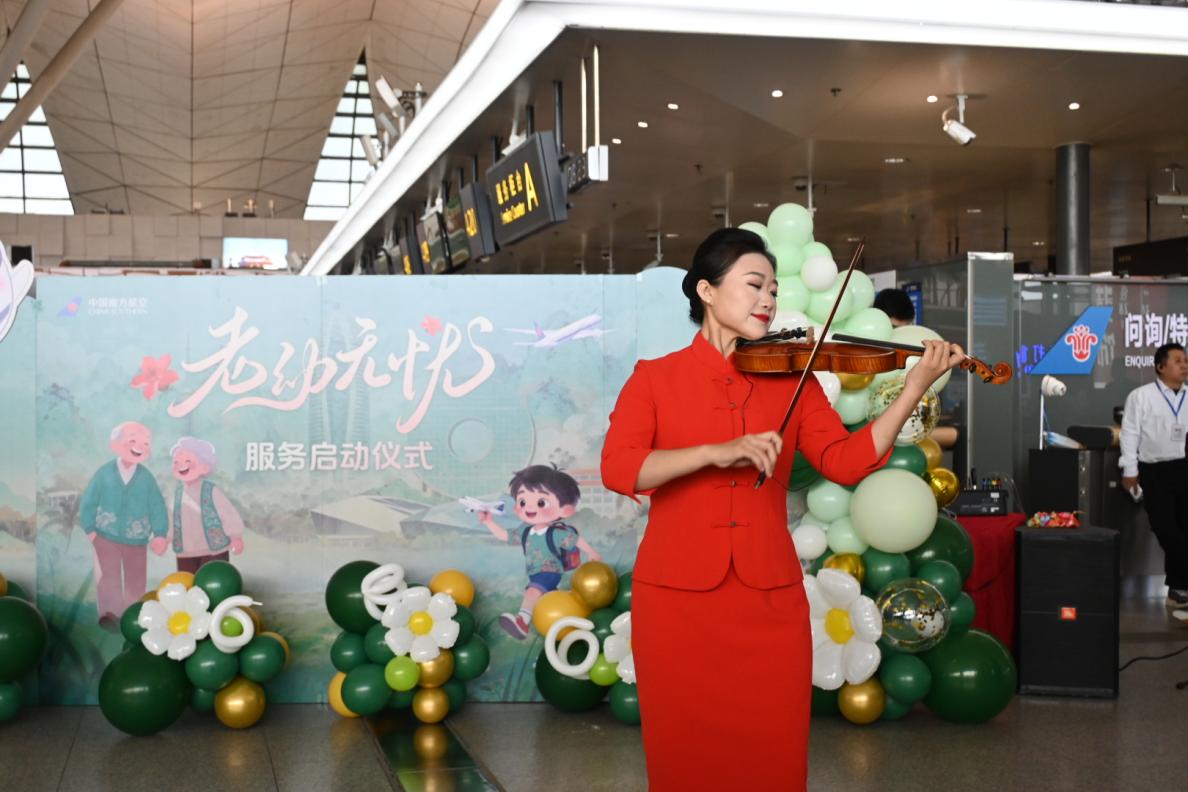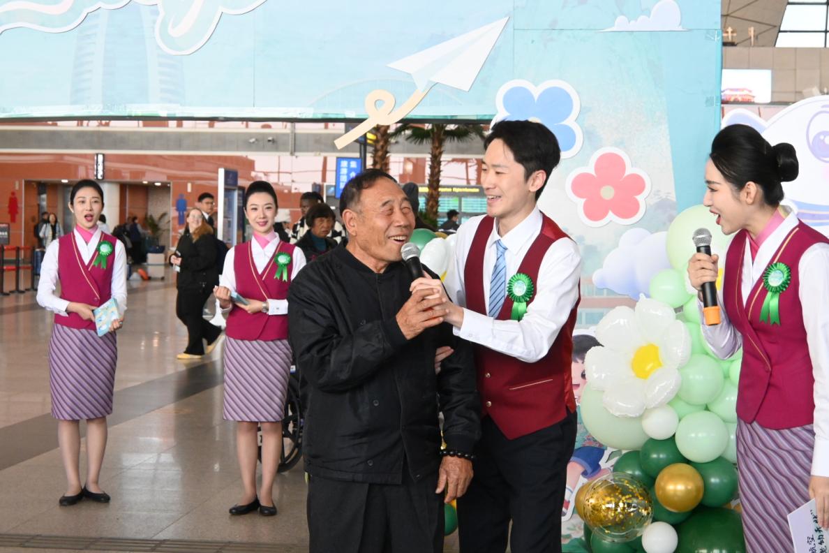 重阳节,中国南方航空正式推出 “老幼无忧”—银发旅客全流程专属服务。该服务聚焦老年旅客出行需求,在沈阳 - 三亚、哈尔滨 - 三亚等热门候鸟航线率先试点。当天,南航北方分公司在沈阳桃仙国际机场T3航站楼举行了温馨而热烈的“老幼无忧”服务沈阳站启动仪式。活动现场,小提琴演奏、舞蹈、唱歌、照片打卡等一系列互动环节,呈现了一场精彩的“空地联动”快闪表演,乘务员以饱满的精神面貌和优雅的职业风采,向现场旅客展示了南航服务的专业与温度,也正式揭开了此次“老幼无忧”的序幕。