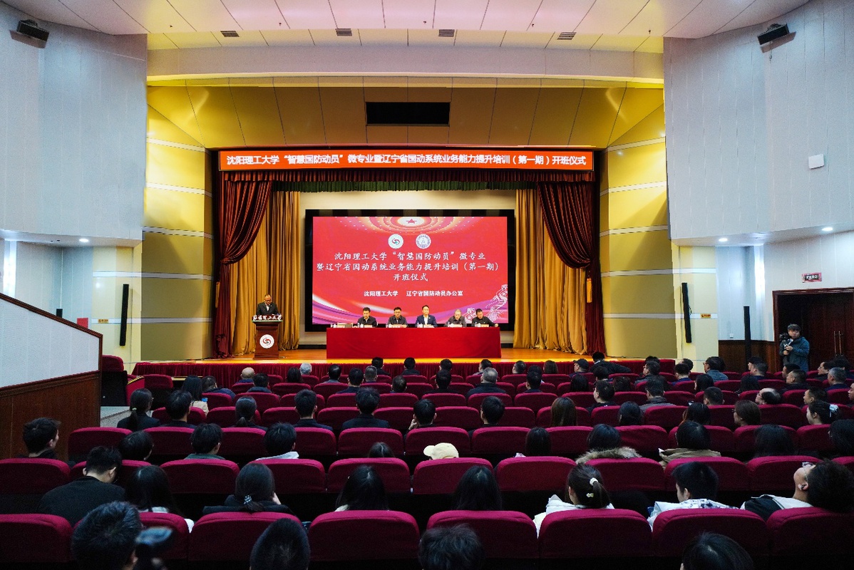 沈阳理工大学“智慧国防动员”微专业暨辽宁省国动系统业务能力提升培训(第一期)开班仪式近日在沈阳理工大学科学会堂报告厅举行。辽宁省国防动员办公室党组书记、主任薛亮,党组成员、副主任何晓波,以及省军区、省国防动员办公室、省交通运输厅、沈阳航空航天大学、中海润科技集团有限公司、四维星图卫星导航技术有限公司、联通(辽宁)产业互联网有限公司、浪潮软件股份有限公司相关领导和行业专家出席仪式。校党委书记宁先圣、党委副书记张树东、副校长陈亮、副校长杨斌,学校相关部门负责同志以及“智慧国防动员”微专业的首批学员、授课教师代表参加仪式。仪式由陈亮主持。
