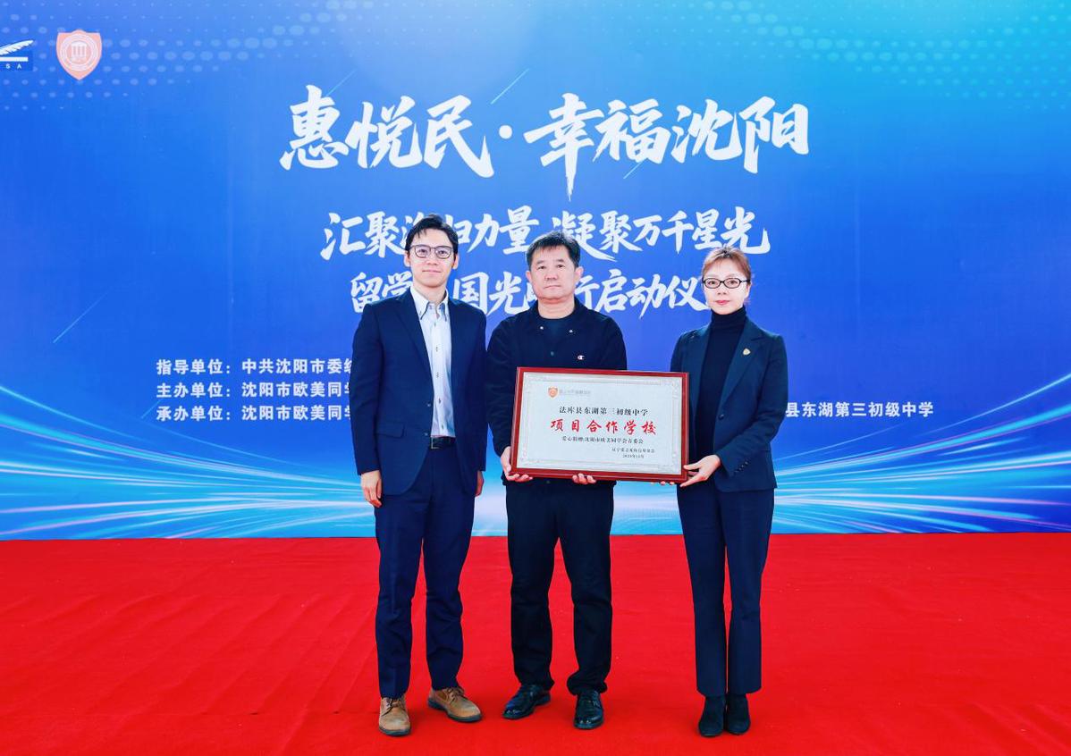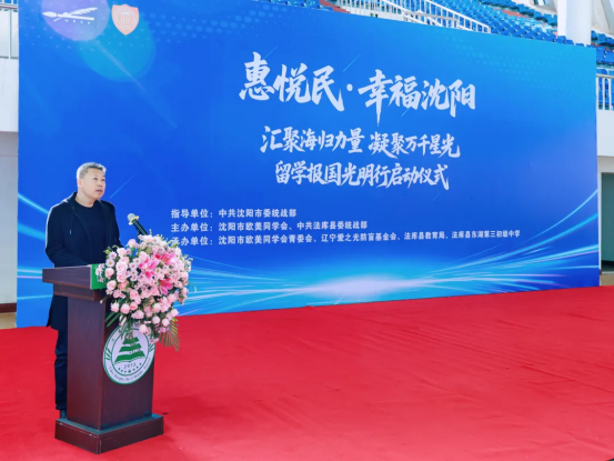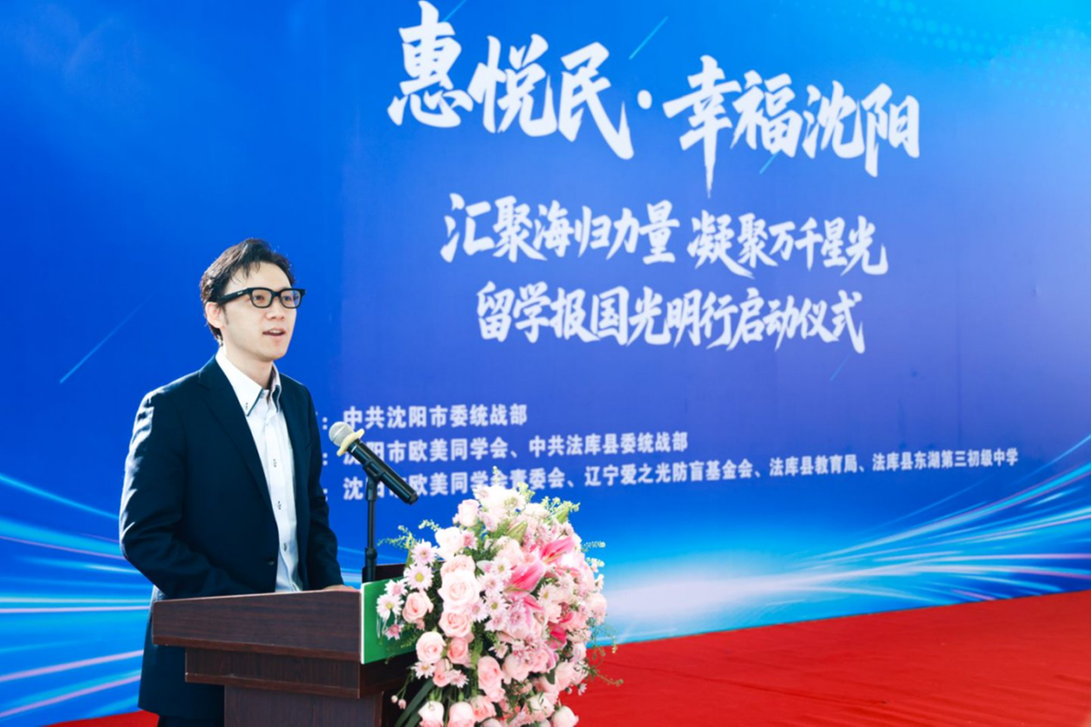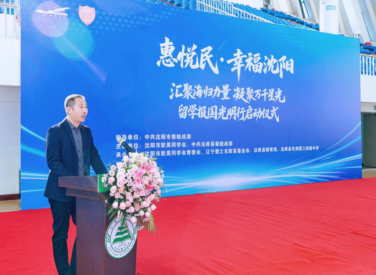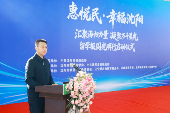 11月18日,由中共沈阳市委统战部指导,沈阳市欧美同学会、中共法库县委统战部主办,沈阳市欧美同学会青委会、辽宁爱之光防盲基金会、法库县教育局、法库县东湖第三初级中学联合承办的“惠悦民·幸福沈阳留学报国光明行”启动仪式在法库县东湖第三初级中学隆重举行。本次活动聚焦青少年眼健康,以公益行动践行留学报国初心,助力“健康沈阳”建设。
