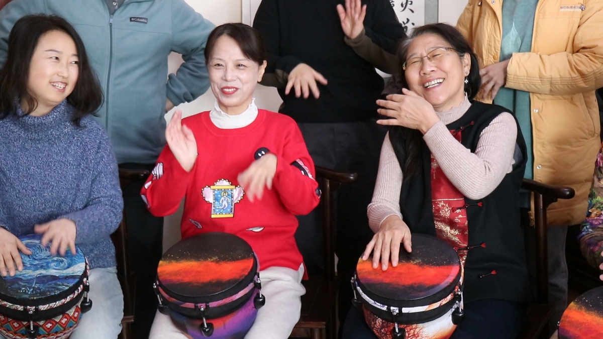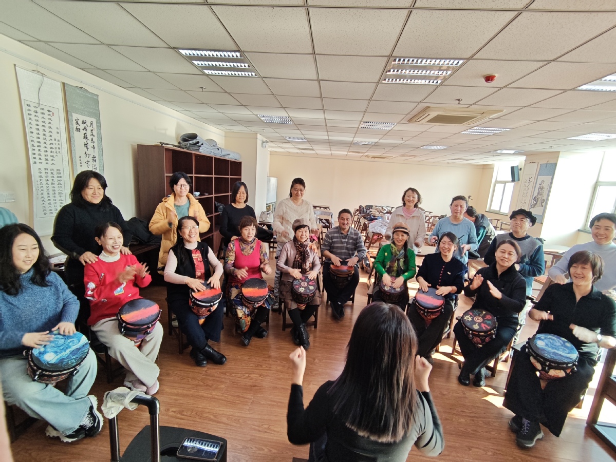讲座的高潮部分是歌曲演奏实践。在李老师的精心指导下,学员们将所学节奏技巧融会贯通,共同合作演奏了充满韵味的歌曲《苹果香》。当熟悉的旋律与富有节奏感的鼓声巧妙融合,创造出一种新颖而动人的音乐体验,赢得了现场阵阵掌声。参与者们不仅感受到了团队协作的成就感,更深刻体会到了非洲鼓音乐的独特魅力。